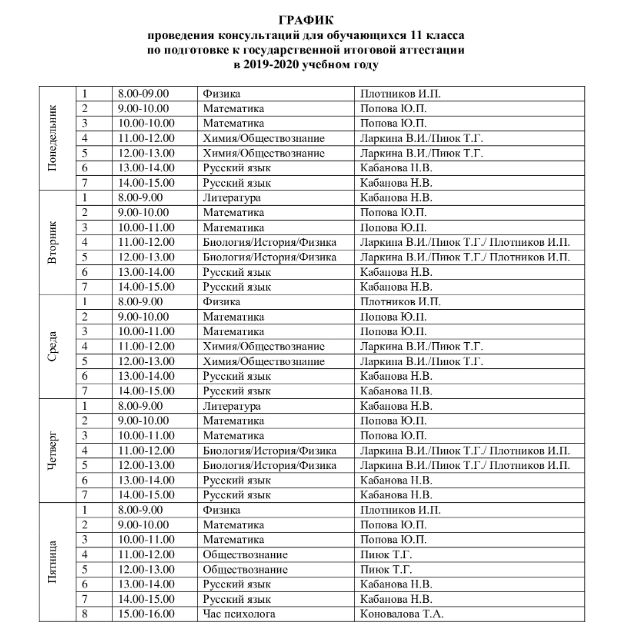 График консультаций по подготовке к ГИА (11 класс)
